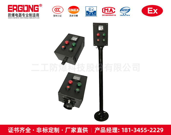 二工防爆,專業(yè)生產(chǎn)防爆電器、防爆燈具、防爆管件、防爆儀器儀表、不銹鋼防爆電器、防爆防腐電器、粉塵防爆電器和防水防塵防腐電器及燈具、防爆風機、防爆空調(diào)、移動照明等產(chǎn)品、銷售及技術(shù)服務(wù)為一體的企業(yè)。